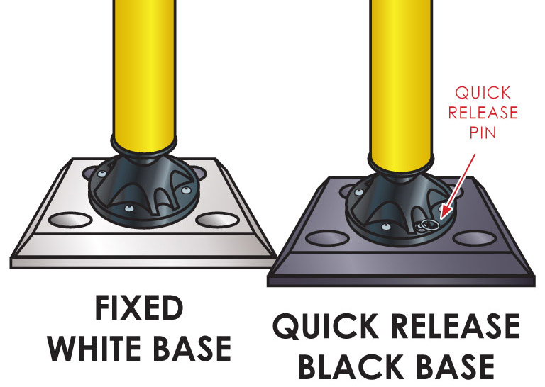 The 'Sta-Rite' sign posts are a durable and versatile option for high traffic parking lots. Designed with a reactive spring unit to withstand bumper hits and return to their original position, without damaging the post or vehicle. The choice of Fixed and Quick Release bases work well in most situations, whereas the Drivable base works best in those areas where you have loose surface areas or grass/dirt.