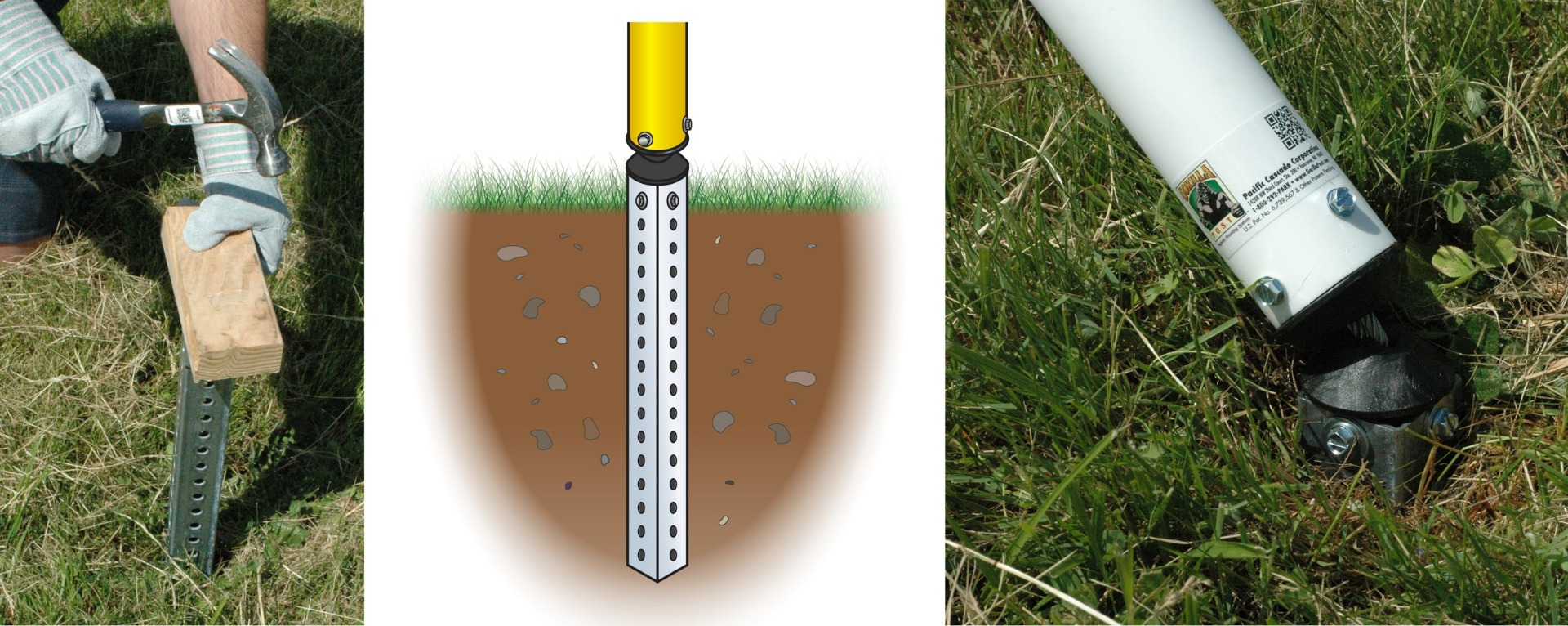 Many outdoor events have temporary parking areas on dirt, grass or gravel. The Drivable Soil Base Gorilla Post is designed to be used effectively on these loose surfaces. Parking logistics are everything when it comes to delivering a safe and enjoyable experience to attendees. A one-foot long corrugated steel square tube is first driven into the ground to create an anchor base for the delineator or sign post. The special base on the 2-1/3” Gorilla Post is then installed onto the steel tube using the provided mounting hardware. The installed Gorilla Post will flex and spring back into position when bumped by a pedestrian or vehicle. The post can be removed when not in use and be returned to the square tube for the next event.