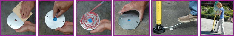 - If mounting onto concrete, use a piece of tape to prevent epoxy from filling the centering hole in the middle of the plate before smearing epoxy onto entire surface of the plate itself. Press the plate into place. Allow ample time for the epoxy to cure before use.