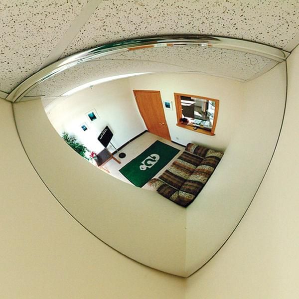 Industrial safety mirrors can typically be broken down two different main categories; Dome Mirrors and Convex Mirrors. Dome Mirrors come only in variations for indoor use, while Convex Mirrors can be found in indoor and outdoor versions. Dome Mirrors can be found in sizes ranging from 18 inches to 60 inches, and with viewing angles of 90 to 360 degrees. Convex mirrors are usually found in a standard circle shape but are also available in a “roundtangular” shape, with straight top and bottom edges, and curves, semi-circular side edges. Indoor Convex Mirrors come with a light-duty fiberboard backing, while Outdoor Convex Mirrors have a sturdier weather and UV-resistant polycarbonate backing. Sizes for Convex Mirrors can range from 12 inches to 48 inches. Be careful when ordering mirrors that are 36 inches or larger; these orders are non-refundable! Please double check your measurements and requirements before placing your order.
